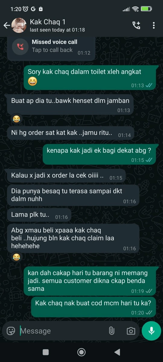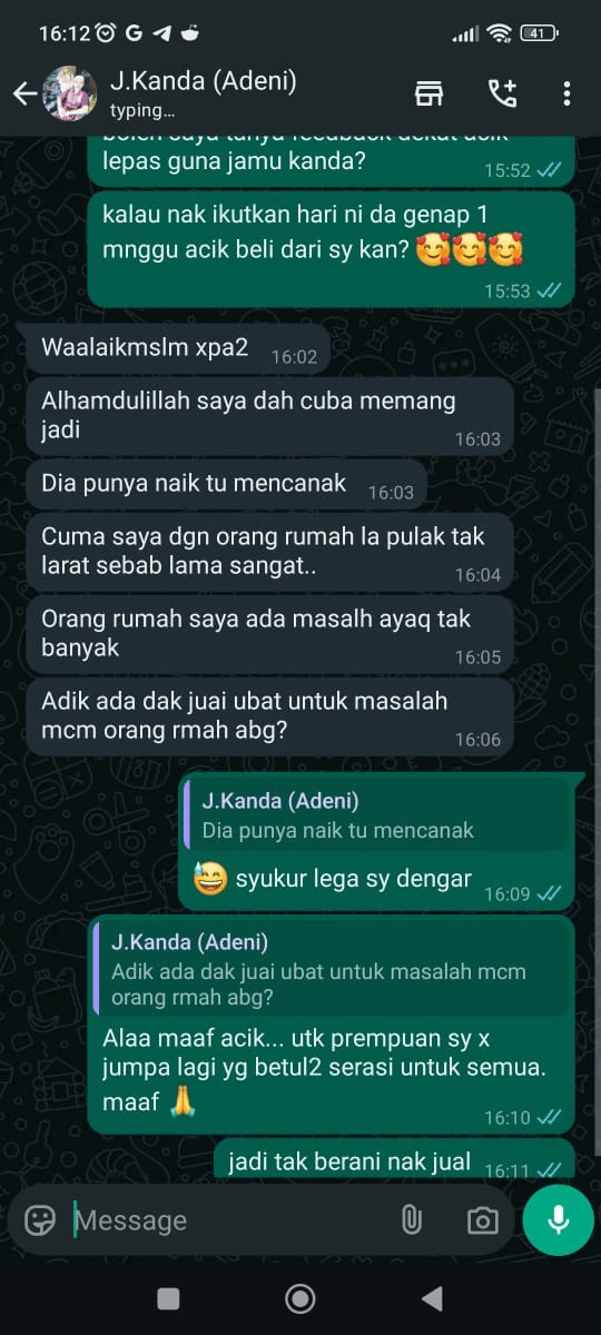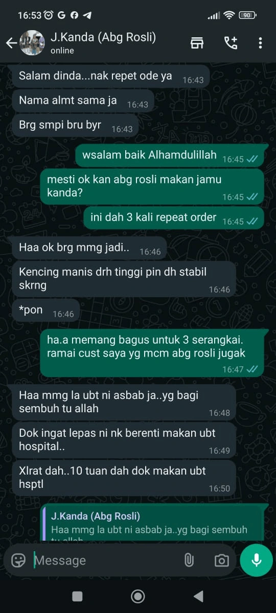 Selama Kanda jual Jamu Kanda tak pernah lagi dapat complain. Namun jika tak berkesan selama 3 bulan, Kanda akan beri money back guaranteed dengan syarat beli pakej RM 130 dan habiskan selama 3 bulan. Jangan risau sahabat … Kanda tau hukum hakam. Niat Kanda nak tolong orang seramai mungkin rasa nikmat sebenar berumah tangga